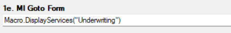 If you would like to use Encompass native Macro.DisplayServices function to direct users to use a service instead of directing them to a form, you may reference these actions in the MI Goto Form section of the configuration in the same way you would on a custom input form.
